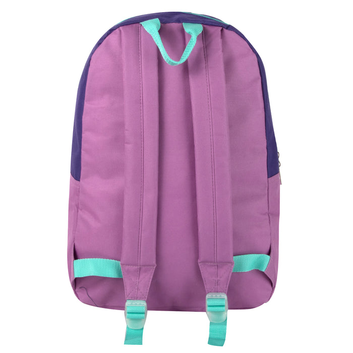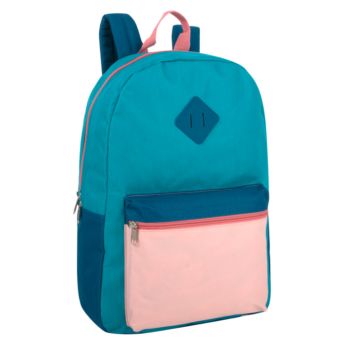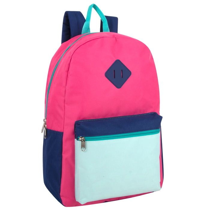 Estas mochilas escolares a granel de 17 polgadas teñen un asa superior resistente, 2 correas axustables e 2 compartimentos cun acento único na parte superior. O compartimento principal é ideal para libros, e o peto frontal é ideal para lapis, lapis, bolígrafos, etc. A todos encantarán estas mochilas clásicas.